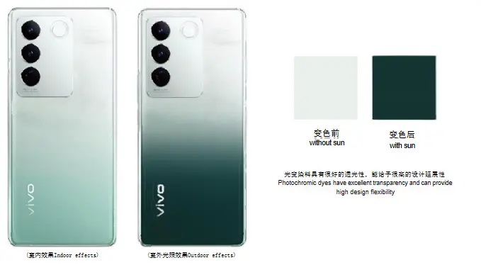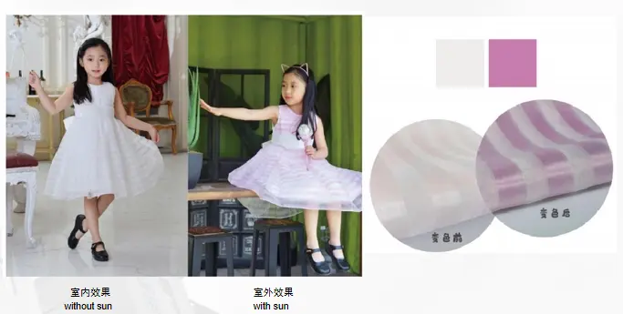 Το Photochromic Material είναι ένα υλικό φωτοχρωμικής σκόνης που κατασκευάζεται με τύλιγμα φωτοχρωμικών χρωστικών σε μικροκάψουλες μέσω ειδικών διεργασιών, οι οποίες μπορούν να απορροφήσουν την ενέργεια του ηλιακού φωτός (υπεριώδης) αφού ακτινοβοληθεί από το ηλιακό φως (υπεριώδης), με αποτέλεσμα αλλαγές στη μοριακή δομή, με αποτέλεσμα αλλαγές στα μήκη κύματος απορρόφησης, με αποτέλεσμα αλλαγές χρώματος. Όταν η ηλιακή ενέργεια (υπεριώδης) χάνεται, επιστρέφει στην αρχική της μοριακή δομή και αποκαθιστά το αρχικό της χρώμα. Χαρακτηριστικός: